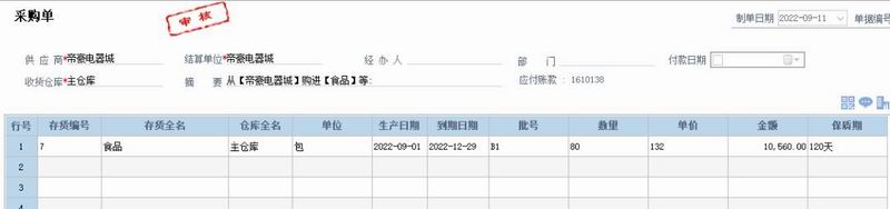 然后在做入庫(kù)類單據(jù)時(shí),可以錄入生產(chǎn)日期,根據(jù)參數(shù)設(shè)置,系統(tǒng)將自動(dòng)計(jì)算生產(chǎn)日期或到期日期。