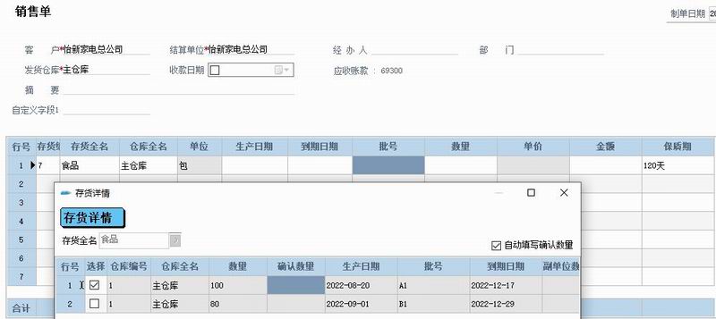 出庫(kù)時(shí)選擇商品,選擇對(duì)應(yīng)批號(hào),就可以自動(dòng)帶出生產(chǎn)日期和保質(zhì)期。