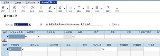 注:委外加工單只能拆分成委外加工,不能拆分成生產任務單。